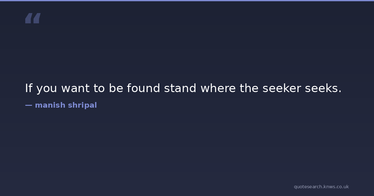 If you want to be found stand where the seeker seeks. man Download Image Share on X Share on Facebook Copy Link