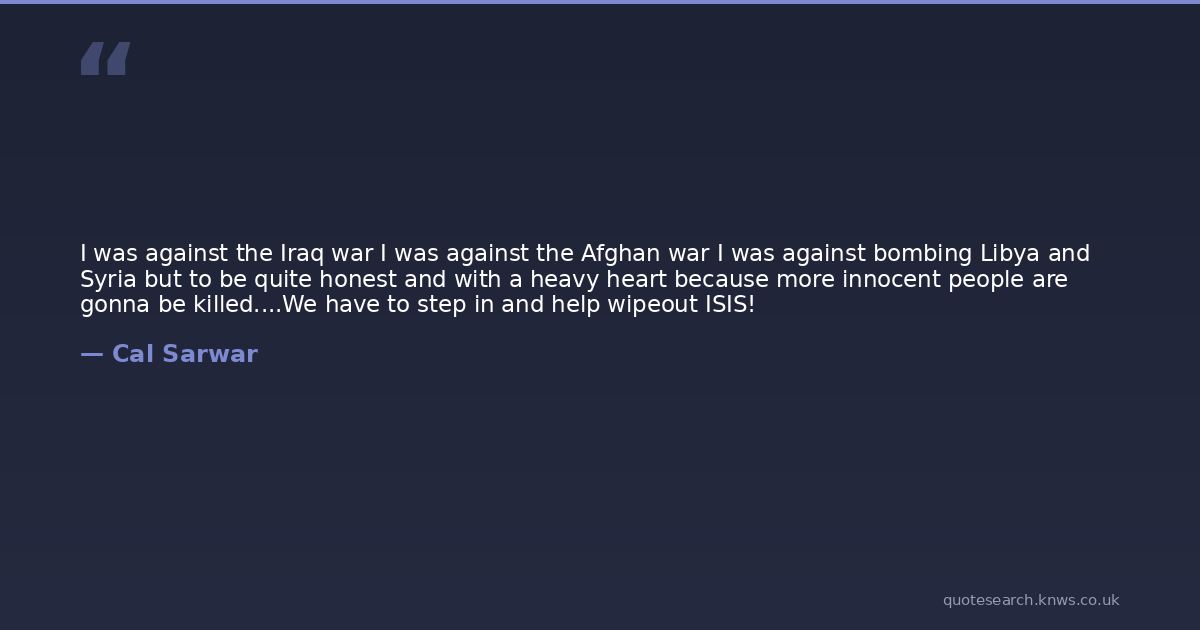 I was against the Iraq war I was against the Afghan war I was against bombing Libya and Syria but to be quite honest and with a heavy heart because more innocent people are gonna be killed....We have to step in and help wipeout ISIS!