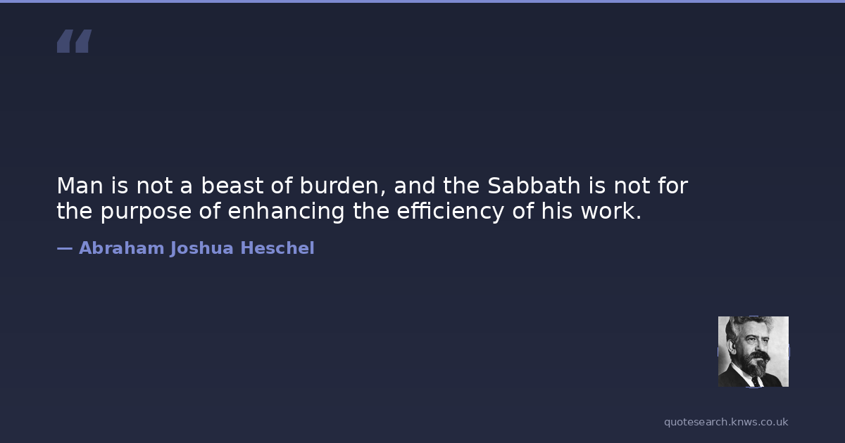 Man is not a beast of burden, and the Sabbath is not for the purpose of enhancing the efficiency of his work.