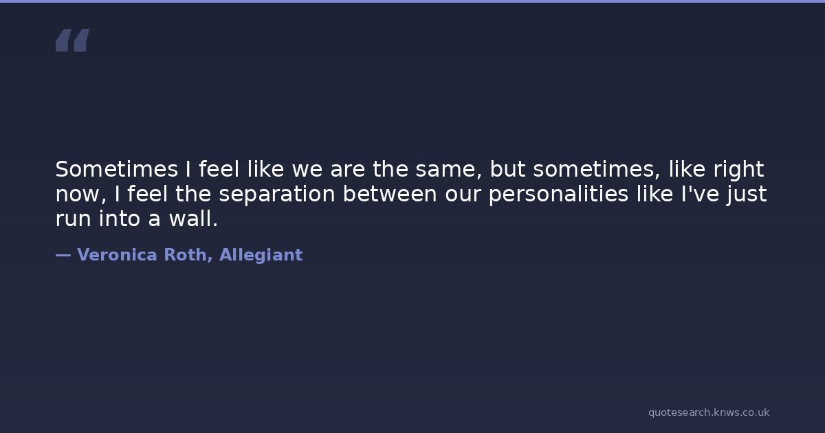 Sometimes I feel like we are the same, but sometimes, like right now, I feel the separation between our personalities like I've just run into a wall.