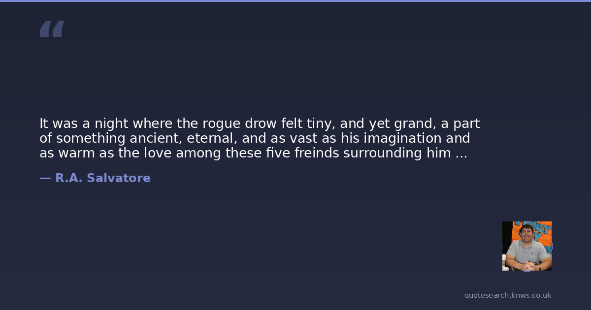It was a night where the rogue drow felt tiny, and yet grand, a part of something ancient, eternal, and as vast as his imagination and as warm as the love among these five freinds surrounding him ...