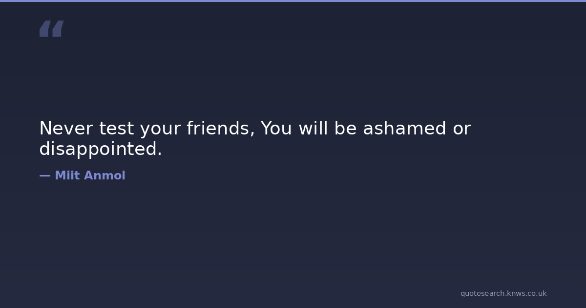 Never test your friends, You will be ashamed or disappointed. friends Download Image Share on X Share on Facebook Copy Link