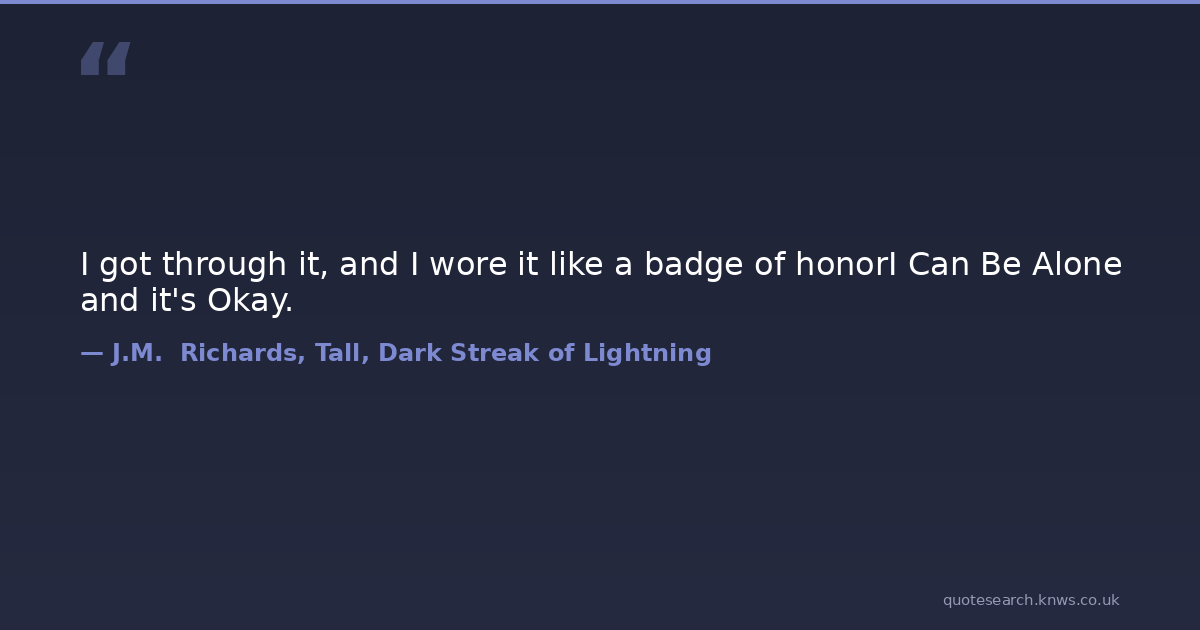 I got through it, and I wore it like a badge of honorI Can Be Alone and it's Okay.