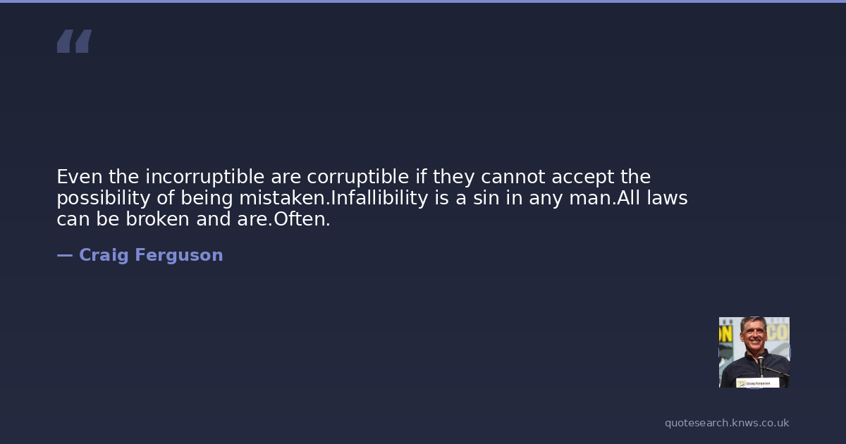 Even the incorruptible are corruptible if they cannot accept the possibility of being mistaken.Infallibility is a sin in any man.All laws can be broken and are.Often.