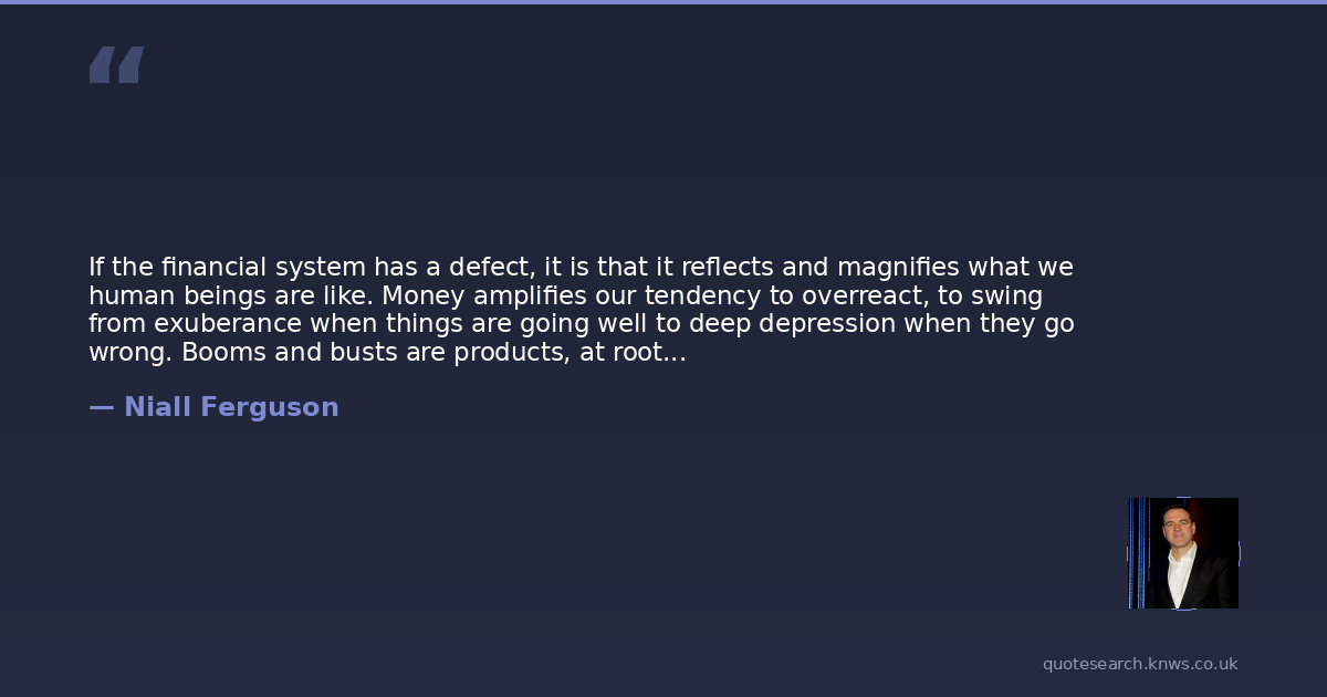 If the financial system has a defect, it is that it reflects and magnifies what we human beings are like. Money amplifies our tendency to overreact, to swing from exuberance when things are going well to deep depression when they go wrong. Booms and busts are products, at root, of our emotional volatility.