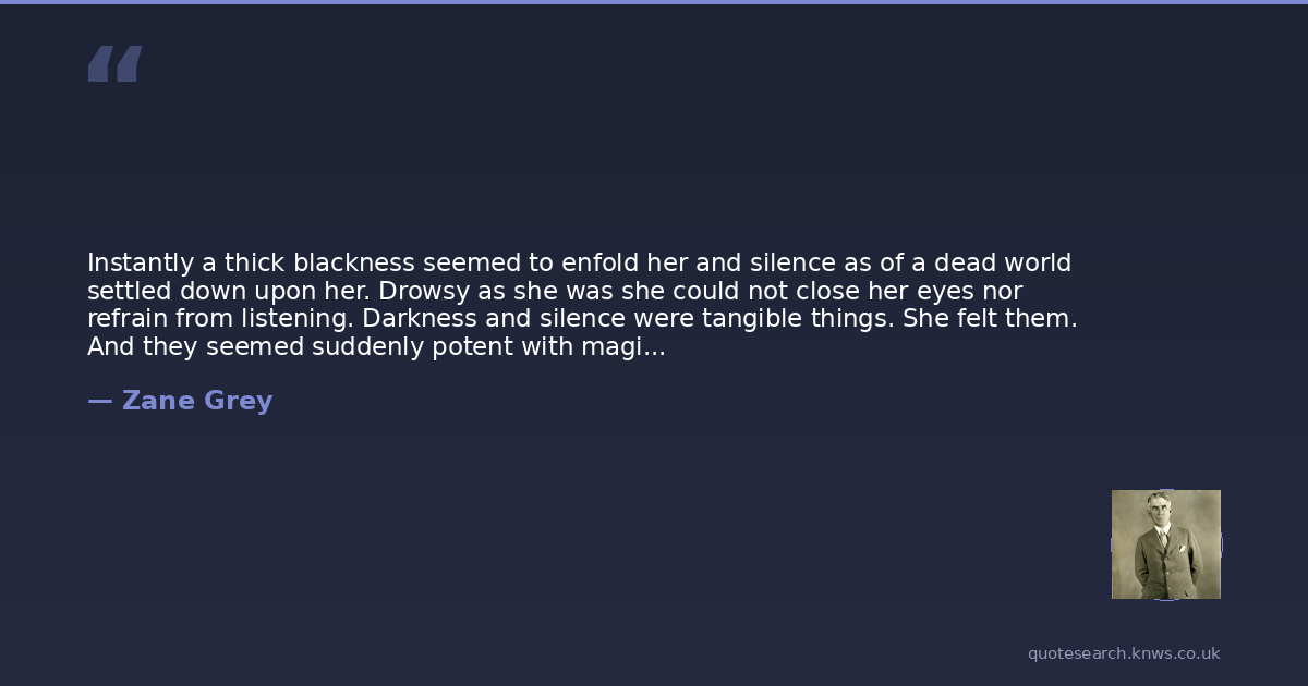 Instantly a thick blackness seemed to enfold her and silence as of a dead world settled down upon her. Drowsy as she was she could not close her eyes nor refrain from listening. Darkness and silence were tangible things. She felt them. And they seemed suddenly potent with magic charm to still the tumult of her, to sooth and rest, to create thought she had never thought before. Rest was more than selfish indulgence. Loneliness was necessary to gain conciseness of the soul.