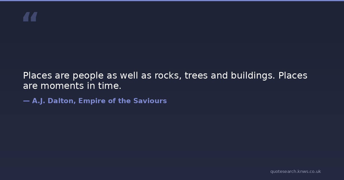 Places are people as well as rocks, trees and buildings. Places are moments in time. thinking Download Image Share on X Share on Facebook Copy Link