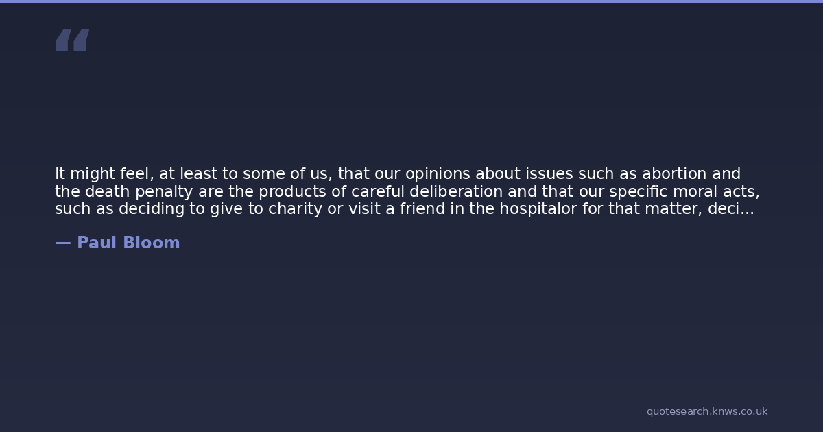 It might feel, at least to some of us, that our opinions about issues such as abortion and the death penalty are the products of careful deliberation and that our specific moral acts, such as deciding to give to charity or visit a friend in the hospitalor for that matter, deciding to shoplift or shout a racist insult out of a car windoware grounded in conscious decision-making. But this is said to be mistaken. As Jonathan Haidt argues, we are not judges; we are lawyers, making up explanations after the deeds have been done. Reason is impotent. "We celebrate rationality," agrees de Waal, "but when push comes to shove we assign it little weight.