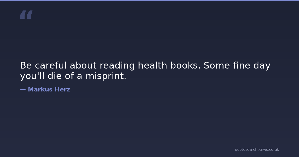 Be careful about reading health books. Some fine day you'll die of a misprint. books health humor misattributed-mark-twain misprints Download Image Share on X Share on Facebook Copy Link