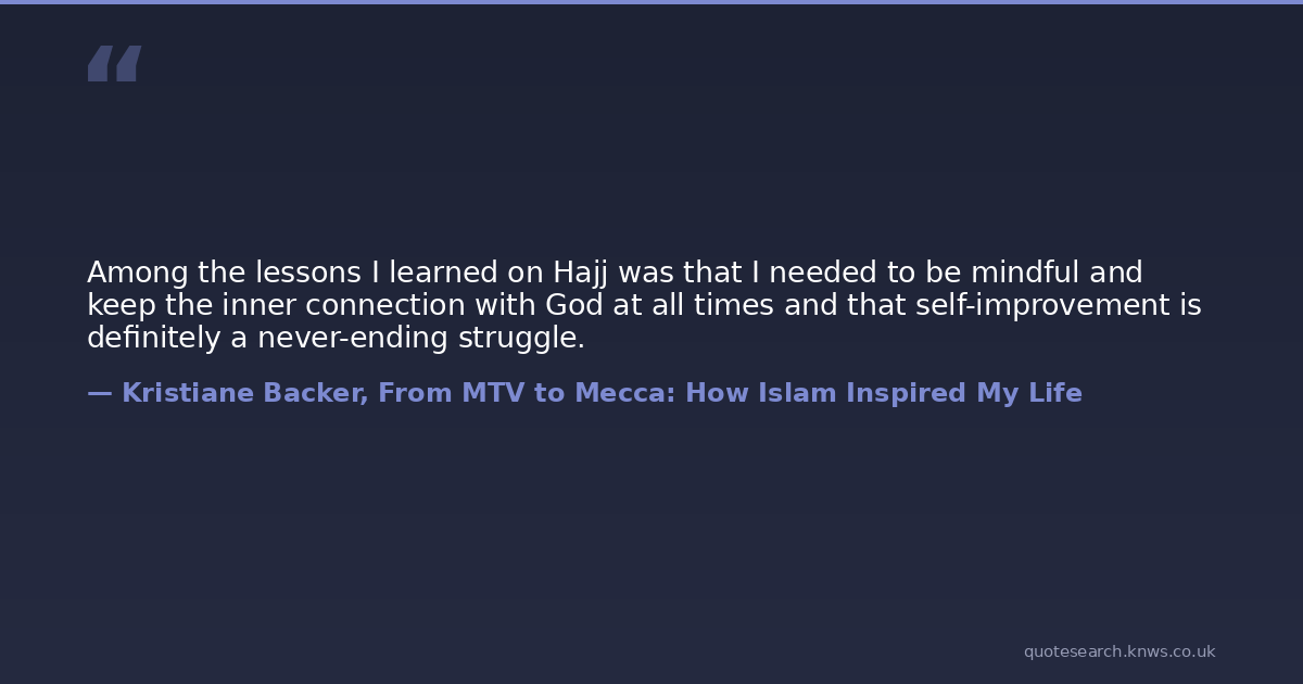 Among the lessons I learned on Hajj was that I needed to be mindful and keep the inner connection with God at all times and that self-improvement is definitely a never-ending struggle.