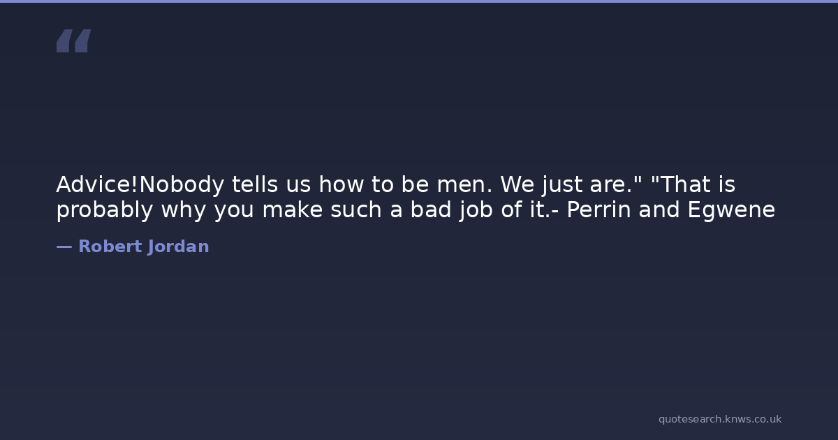 Advice!Nobody tells us how to be men. We just are." "That is probably why you make such a bad job of it.- Perrin and Egwene