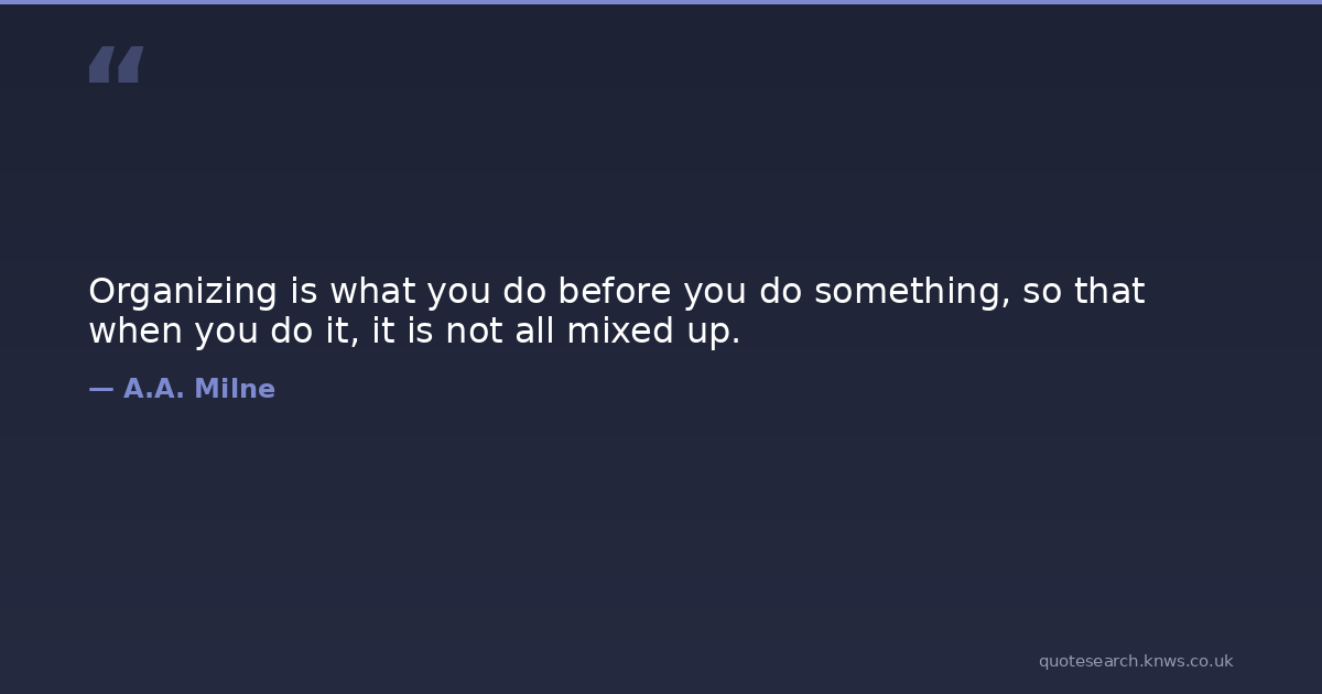 Organizing is what you do before you do something, so that when you do it, it is not all mixed up.
