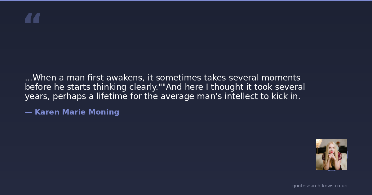 ...When a man first awakens, it sometimes takes several moments before he starts thinking clearly.""And here I thought it took several years, perhaps a lifetime for the average man's intellect to kick in.