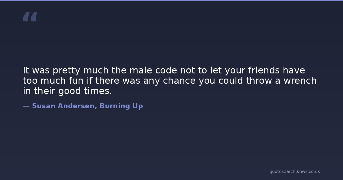 It was pretty much the male code not to let your friends have too much fun if there was any chance you could throw a wrench in their good times.