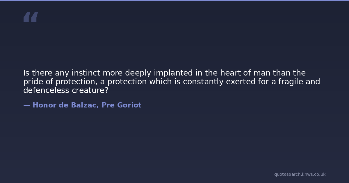 Is there any instinct more deeply implanted in the heart of man than the pride of protection, a protection which is constantly exerted for a fragile and defenceless creature?