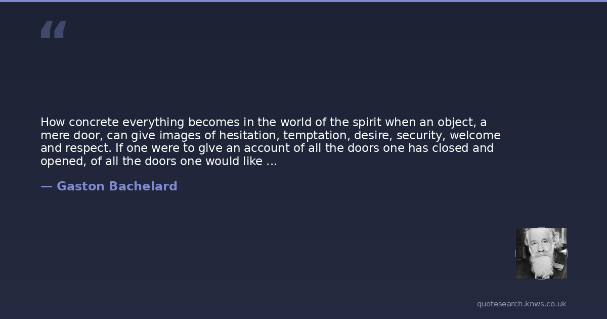 How concrete everything becomes in the world of the spirit when an object, a mere door, can give images of hesitation, temptation, desire, security, welcome and respect. If one were to give an account of all the doors one has closed and opened, of all the doors one would like to re-open, one would have to tell the story of one's entire life.