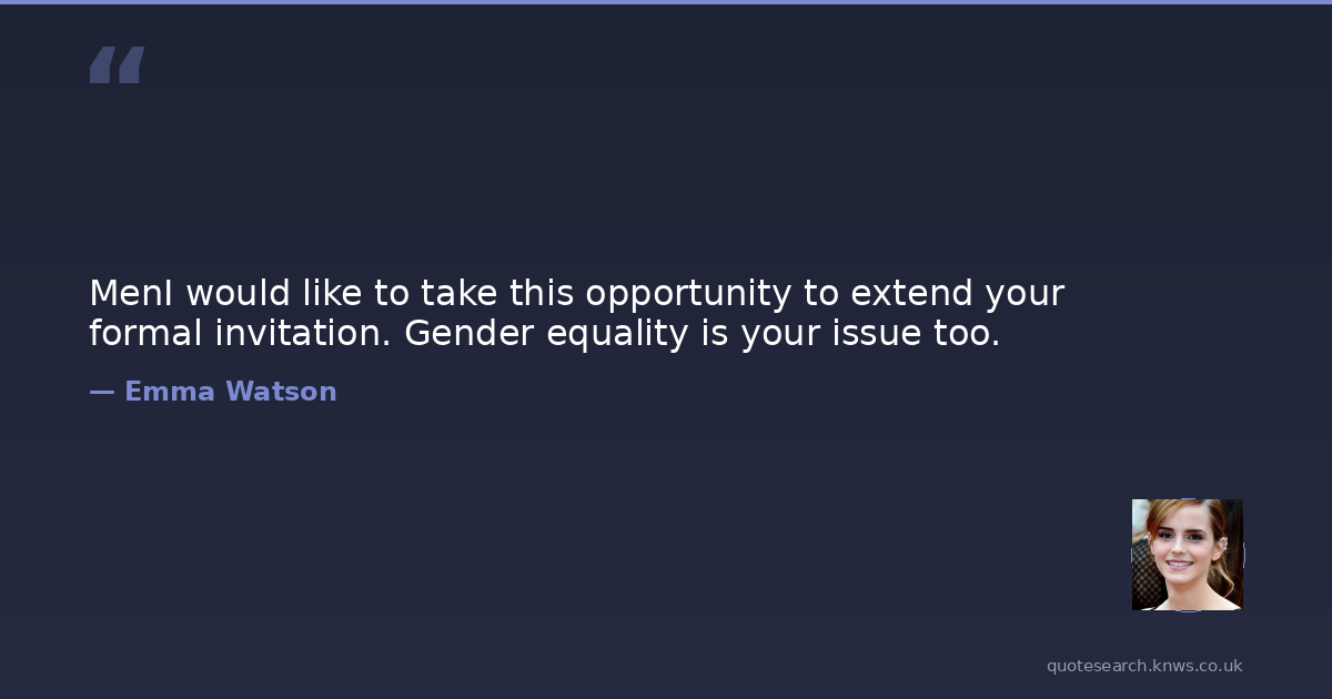 MenI would like to take this opportunity to extend your formal invitation. Gender equality is your issue too.