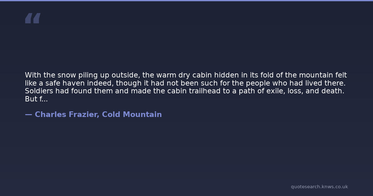 With the snow piling up outside, the warm dry cabin hidden in its fold of the mountain felt like a safe haven indeed, though it had not been such for the people who had lived there. Soldiers had found them and made the cabin trailhead to a path of exile, loss, and death. But for a while that night, it was a place that held within its walls no pain nor even a vague memory collection of pain.
