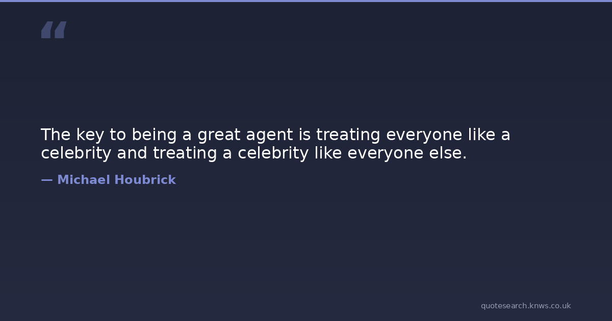 The key to being a great agent is treating everyone like a celebrity and treating a celebrity like everyone else.