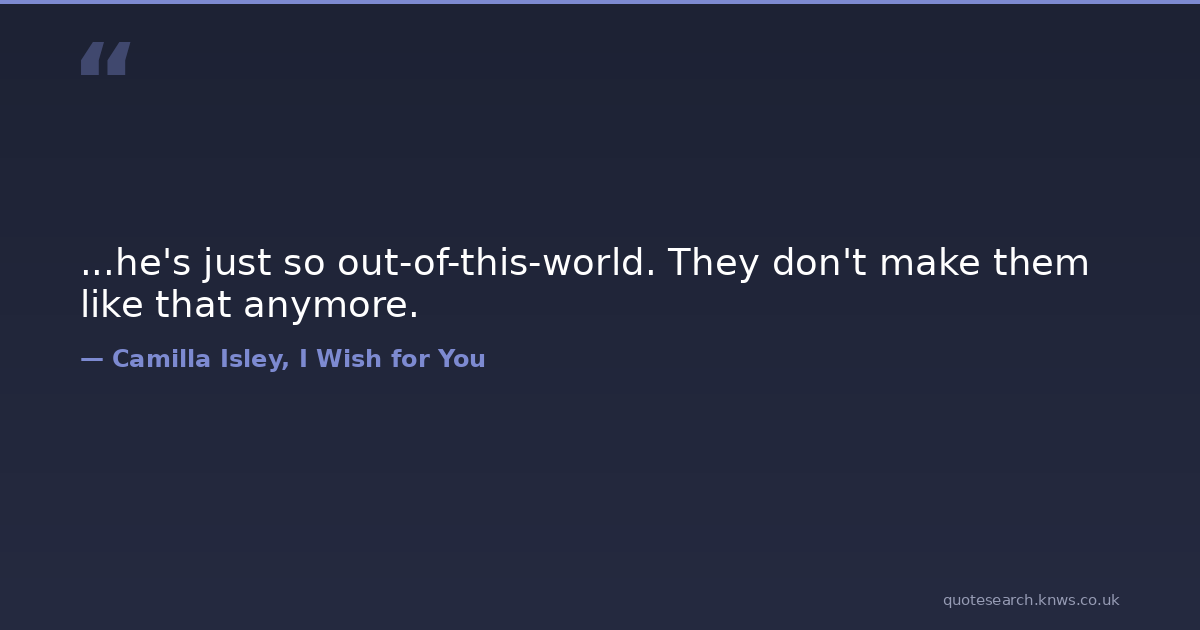 ...he's just so out-of-this-world. They don't make them like that anymore.