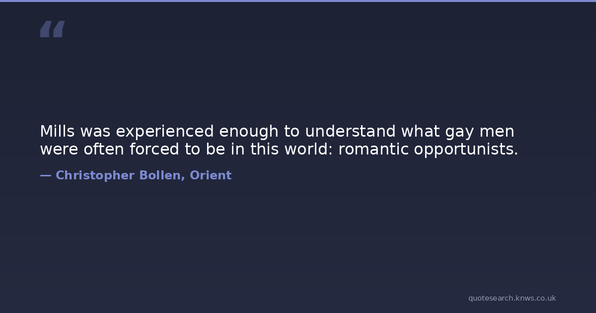 Mills was experienced enough to understand what gay men were often forced to be in this world: romantic opportunists.