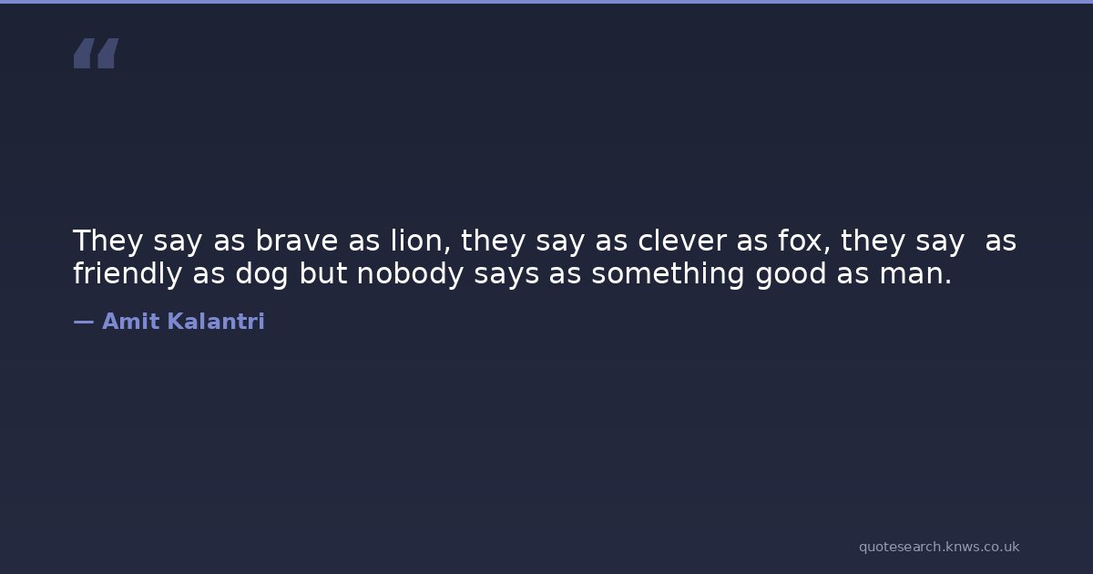 They say as brave as lion, they say as clever as fox, they say as friendly as dog but nobody says as something good as man.
