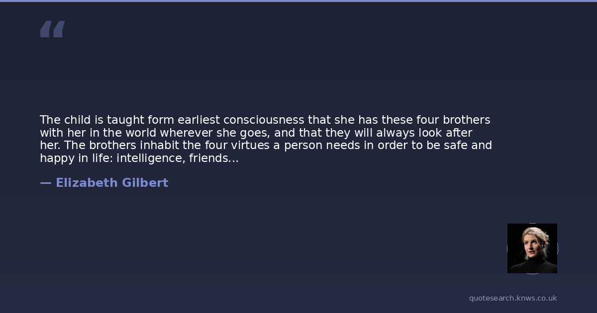 The child is taught form earliest consciousness that she has these four brothers with her in the world wherever she goes, and that they will always look after her. The brothers inhabit the four virtues a person needs in order to be safe and happy in life: intelligence, friendship, strength and poetry. The brothers can be called upon in any critical situation for rescue and assistance. When you die, your four spirit brothers collet your soul and bring you to heaven.