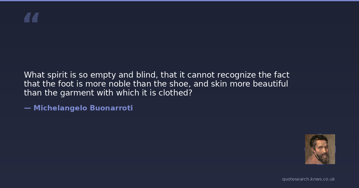 What spirit is so empty and blind, that it cannot recognize the fact that the foot is more noble than the shoe, and skin more beautiful than the garment with which it is clothed?