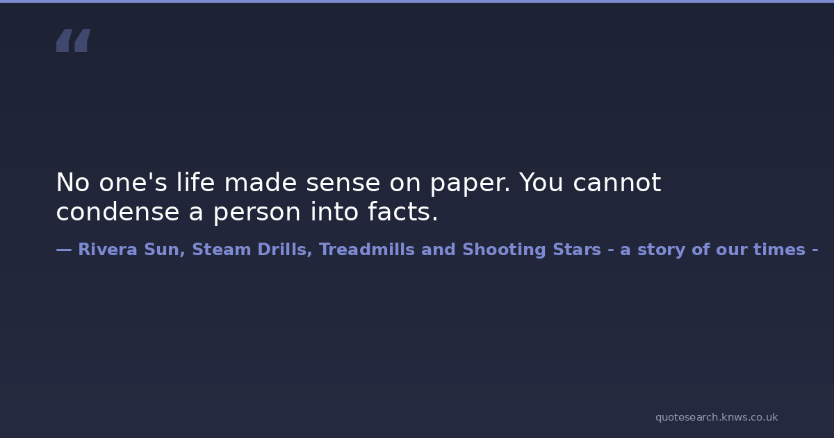 No one's life made sense on paper. You cannot condense a person into facts.