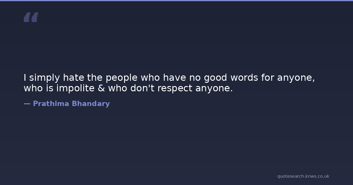 I simply hate the people who have no good words for anyone, who is impolite & who don't respect anyone. bad hate impolite Download Image Share on X Share on Facebook Copy Link