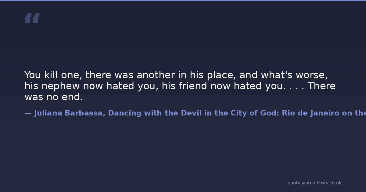 You kill one, there was another in his place, and what's worse, his nephew now hated you, his friend now hated you. . . . There was no end.