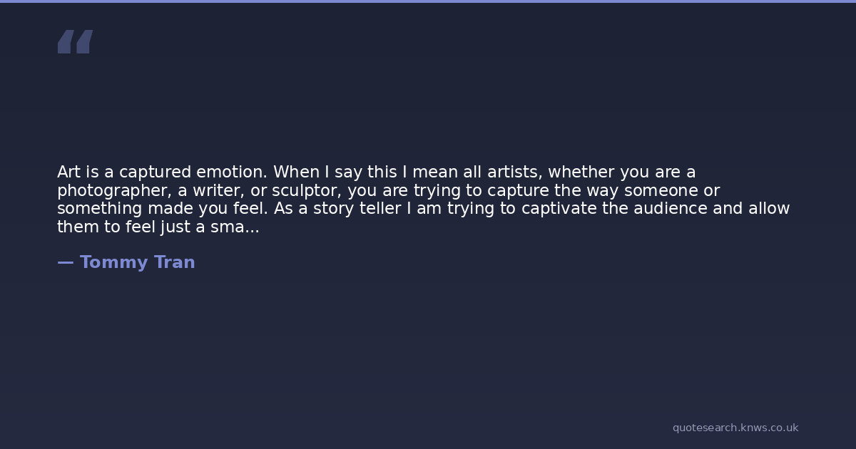 Art is a captured emotion. When I say this I mean all artists, whether you are a photographer, a writer, or sculptor, you are trying to capture the way someone or something made you feel. As a story teller I am trying to captivate the audience and allow them to feel just a small portion of the emotion I am desperately trying to preserve.