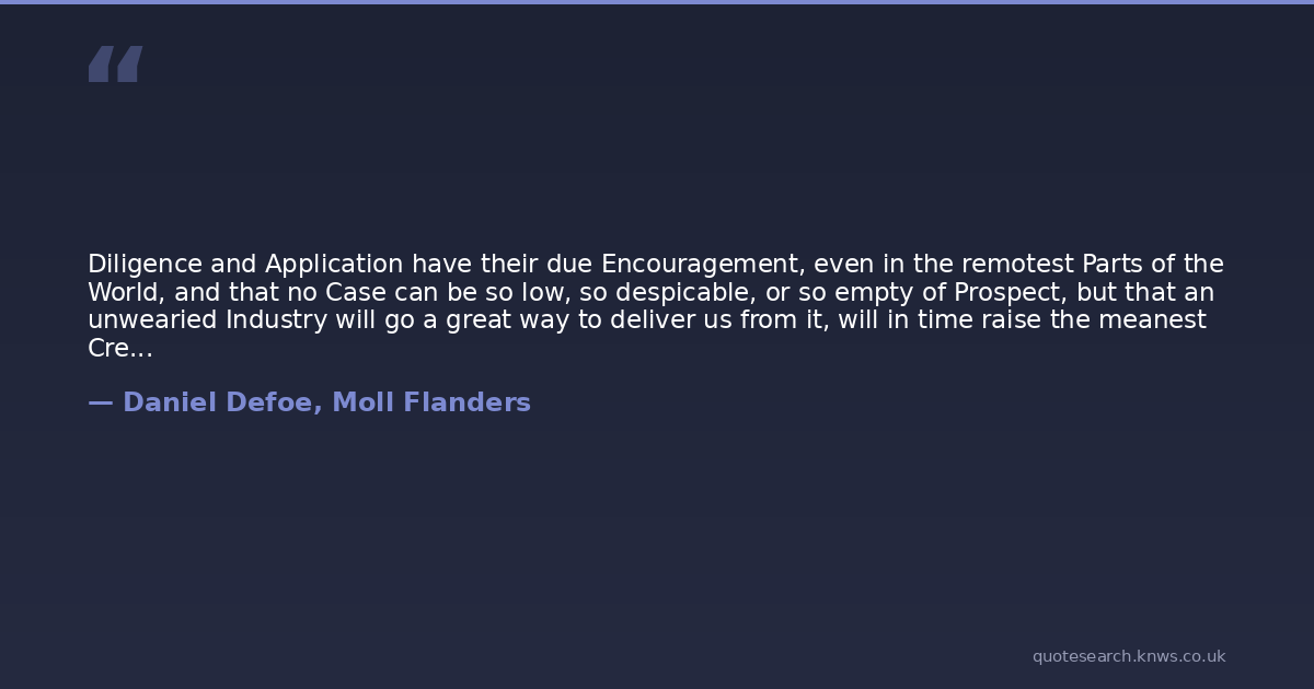 Diligence and Application have their due Encouragement, even in the remotest Parts of the World, and that no Case can be so low, so despicable, or so empty of Prospect, but that an unwearied Industry will go a great way to deliver us from it, will in time raise the meanest Creature to appear again in the World, and give him a new Case for his Life.