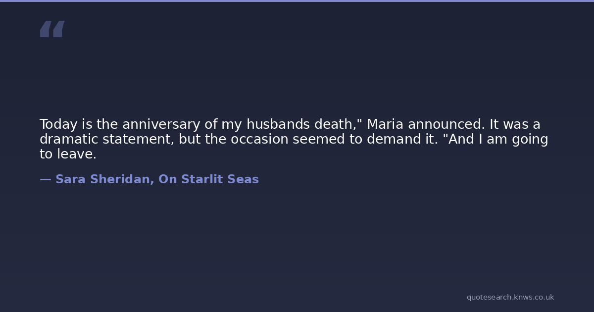 Today is the anniversary of my husbands death," Maria announced. It was a dramatic statement, but the occasion seemed to demand it. "And I am going to leave.