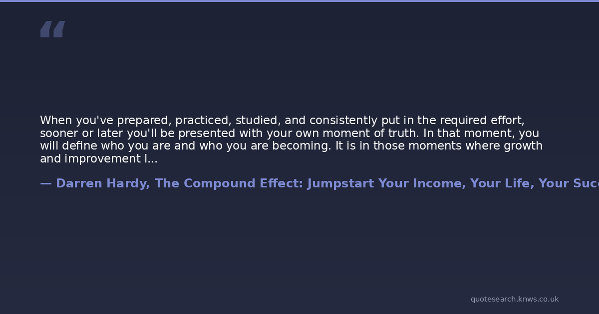 When you've prepared, practiced, studied, and consistently put in the required effort, sooner or later you'll be presented with your own moment of truth. In that moment, you will define who you are and who you are becoming. It is in those moments where growth and improvement live--when we either step forward or shrink back, when we climb to the top of the podium and seize the medal or we continue to applaud sullenly from the crowd for others' victories.
