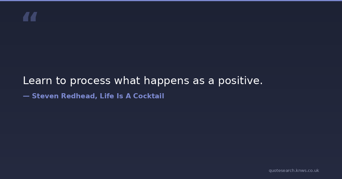 Learn to process what happens as a positive. learning-quotes positive-quotes Download Image Share on X Share on Facebook Copy Link