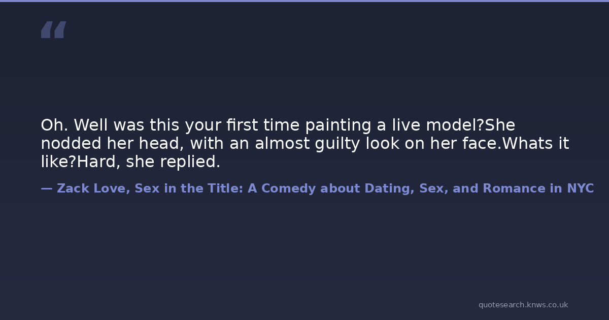 Oh. Well was this your first time painting a live model?She nodded her head, with an almost guilty look on her face.Whats it like?Hard, she replied.