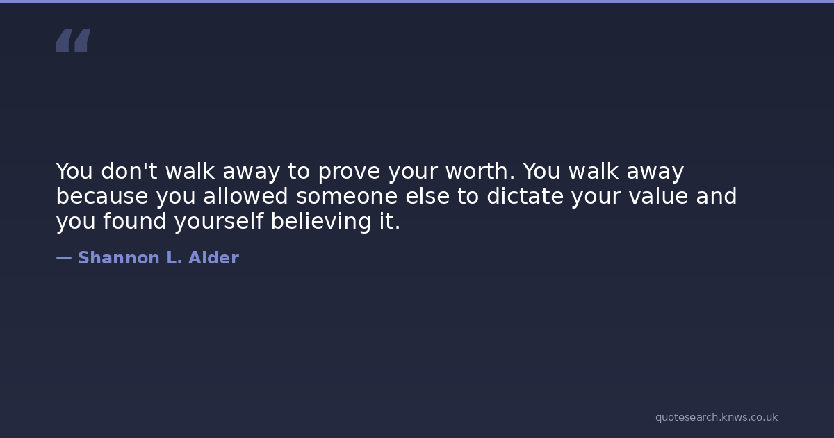 You don't walk away to prove your worth. You walk away because you allowed someone else to dictate your value and you found yourself believing it.