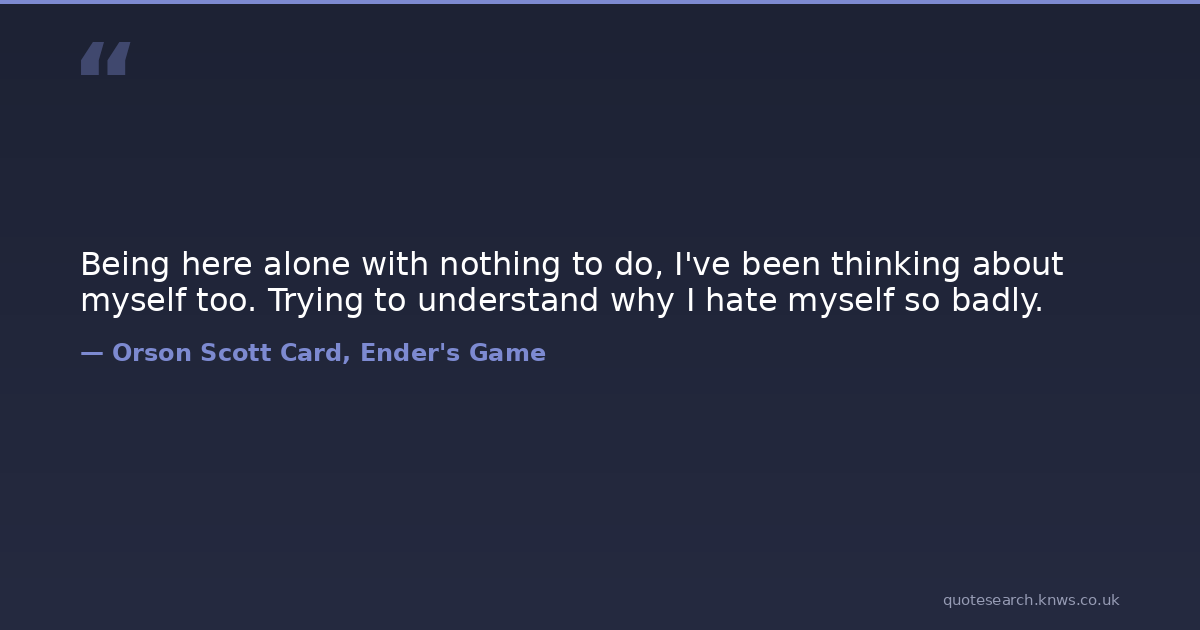 Being here alone with nothing to do, I've been thinking about myself too. Trying to understand why I hate myself so badly.