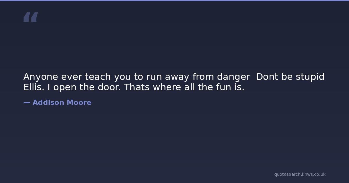 Anyone ever teach you to run away from danger Dont be stupid Ellis. I open the door. Thats where all the fun is. ya Download Image Share on X Share on Facebook Copy Link