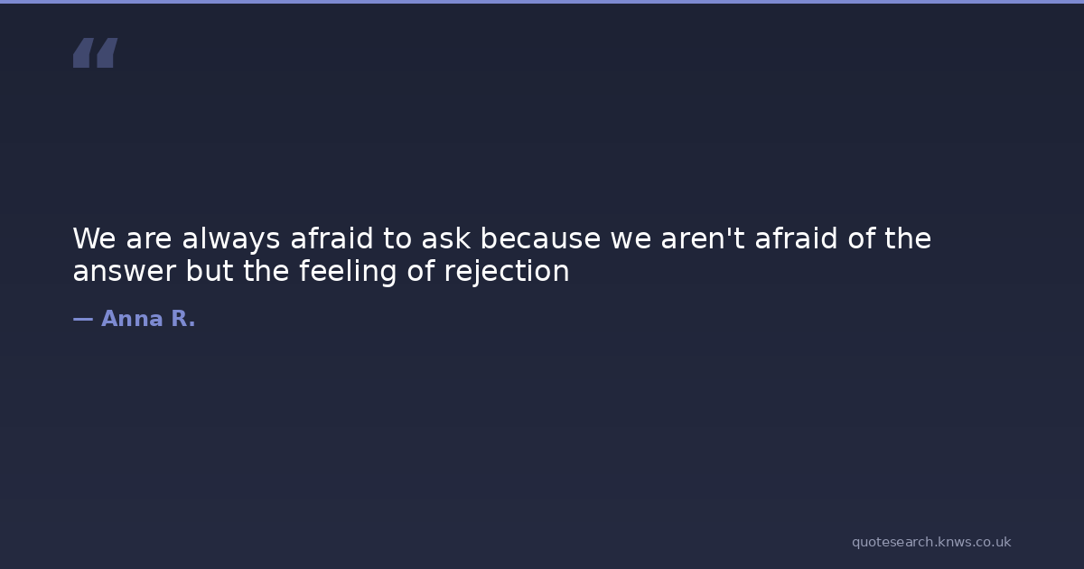 We are always afraid to ask because we aren't afraid of the answer but the feeling of rejection