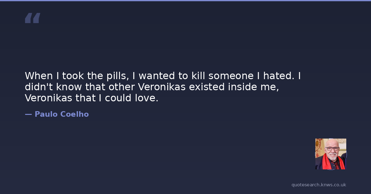 When I took the pills, I wanted to kill someone I hated. I didn't know that other Veronikas existed inside me, Veronikas that I could love.
