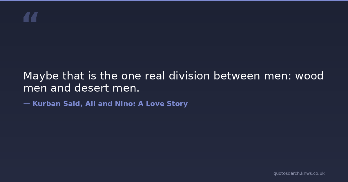 Maybe that is the one real division between men: wood men and desert men. desert men trees wood Download Image Share on X Share on Facebook Copy Link