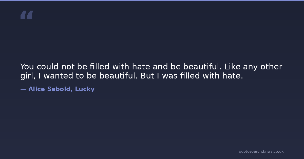 You could not be filled with hate and be beautiful. Like any other girl, I wanted to be beautiful. But I was filled with hate.