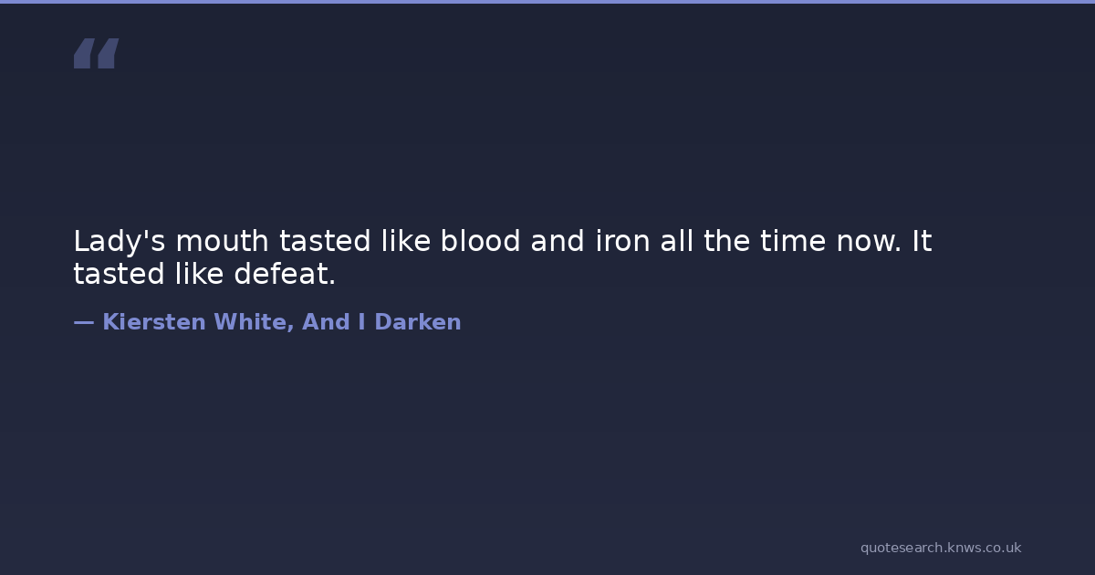 Lady's mouth tasted like blood and iron all the time now. It tasted like defeat.