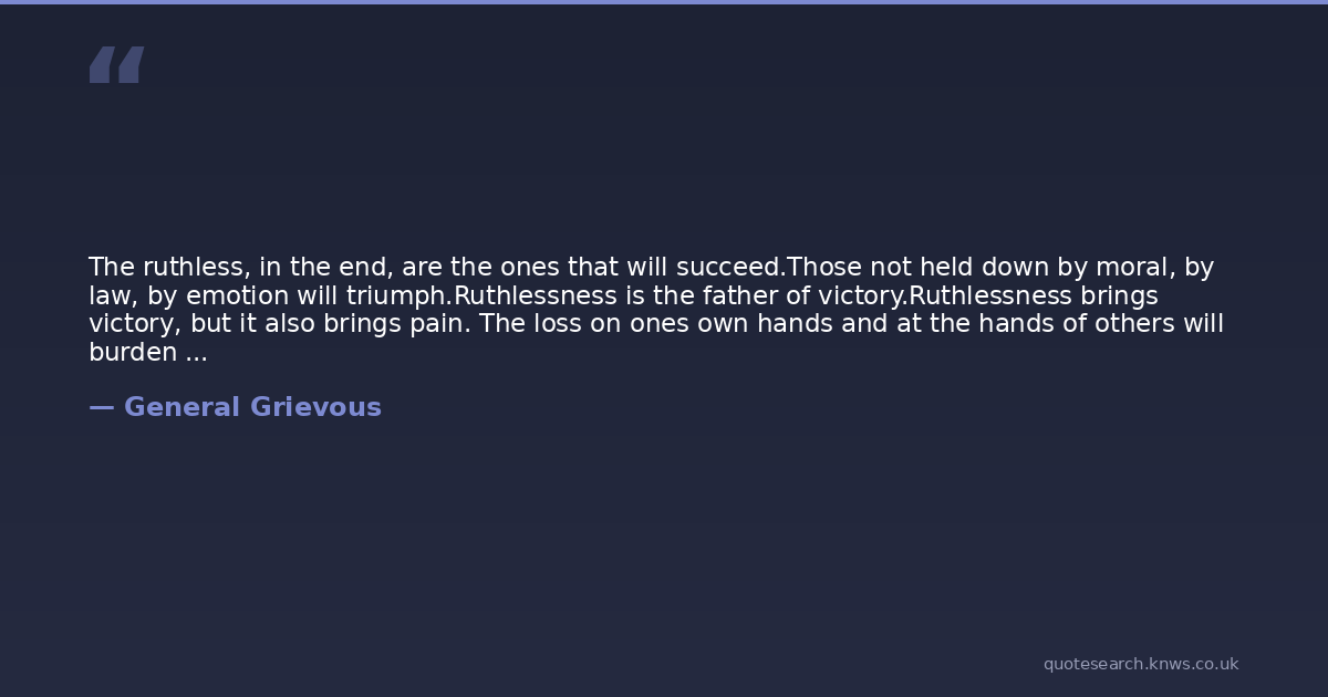 The ruthless, in the end, are the ones that will succeed.Those not held down by moral, by law, by emotion will triumph.Ruthlessness is the father of victory.Ruthlessness brings victory, but it also brings pain. The loss on ones own hands and at the hands of others will burden one forever. But pain, too, is an advantage. Pain is a driving force. Pain can incinerate worlds.Pain creates drive, but it will take its toll.The victory that it brings lasts for a while, but the loss lasts forever.Loss without victory brings bitterness.Bitterness has advantages as well.Bitterness always remembers.Bitterness is the father of vengeance.But while it can lead to vengeance, it can also lead to self-destruction.Ruthlessness, pain, and bitterness are dangerous.If you are not careful, they will betray you. If you are not careful, they can very well destroy you.But to the shrewd, even this can be made an opportunity.Even ruin has its benefits.When ruination is at hand, there is nowhere to go but higher.Ruination is a chance for rebirth.Rebirth is a chance to correct old mistakes.Rebirth is a chance to destroy your enemy forever.