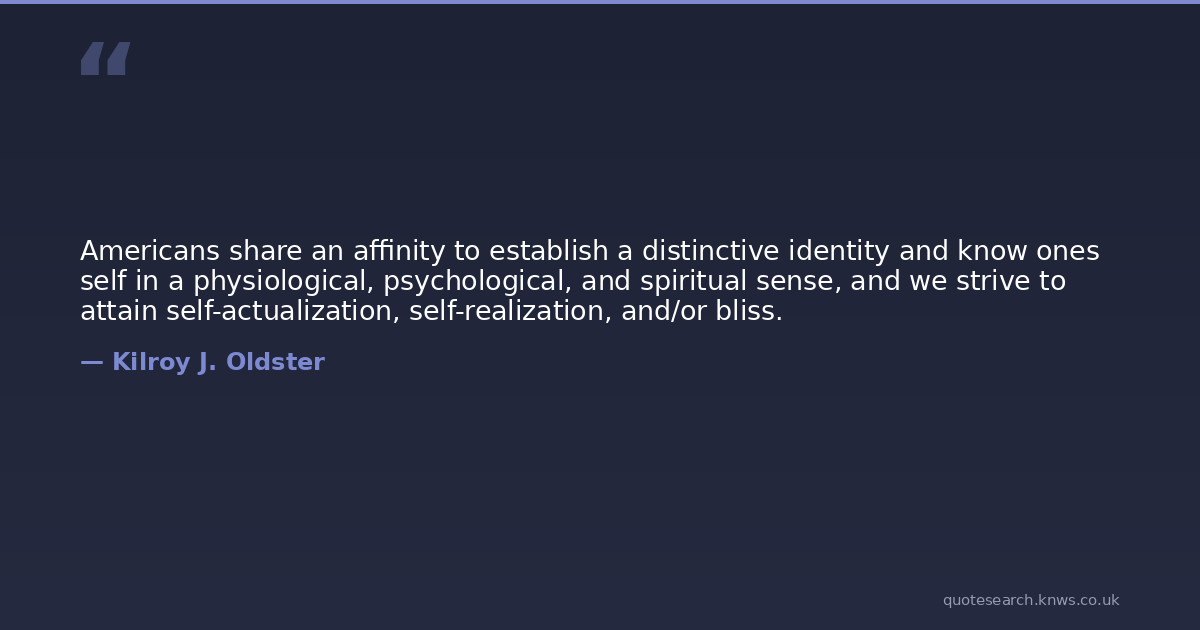 Americans share an affinity to establish a distinctive identity and know ones self in a physiological, psychological, and spiritual sense, and we strive to attain self-actualization, self-realization, and/or bliss.