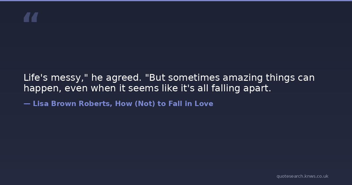 Life's messy," he agreed. "But sometimes amazing things can happen, even when it seems like it's all falling apart.