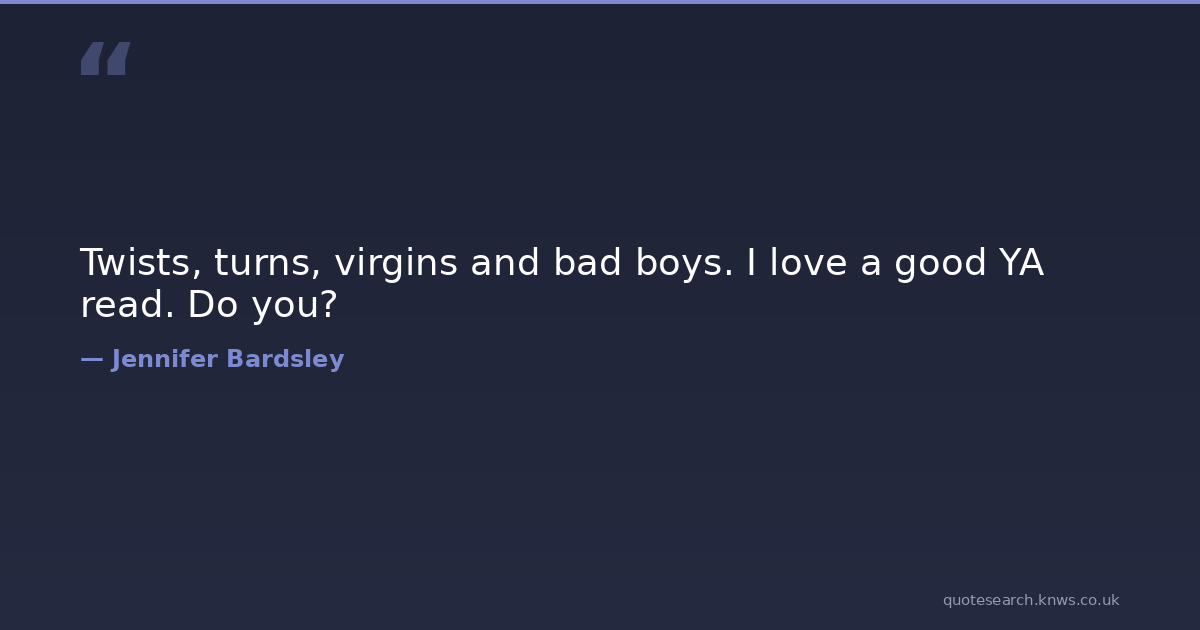 Twists, turns, virgins and bad boys. I love a good YA read. Do you? ya Download Image Share on X Share on Facebook Copy Link