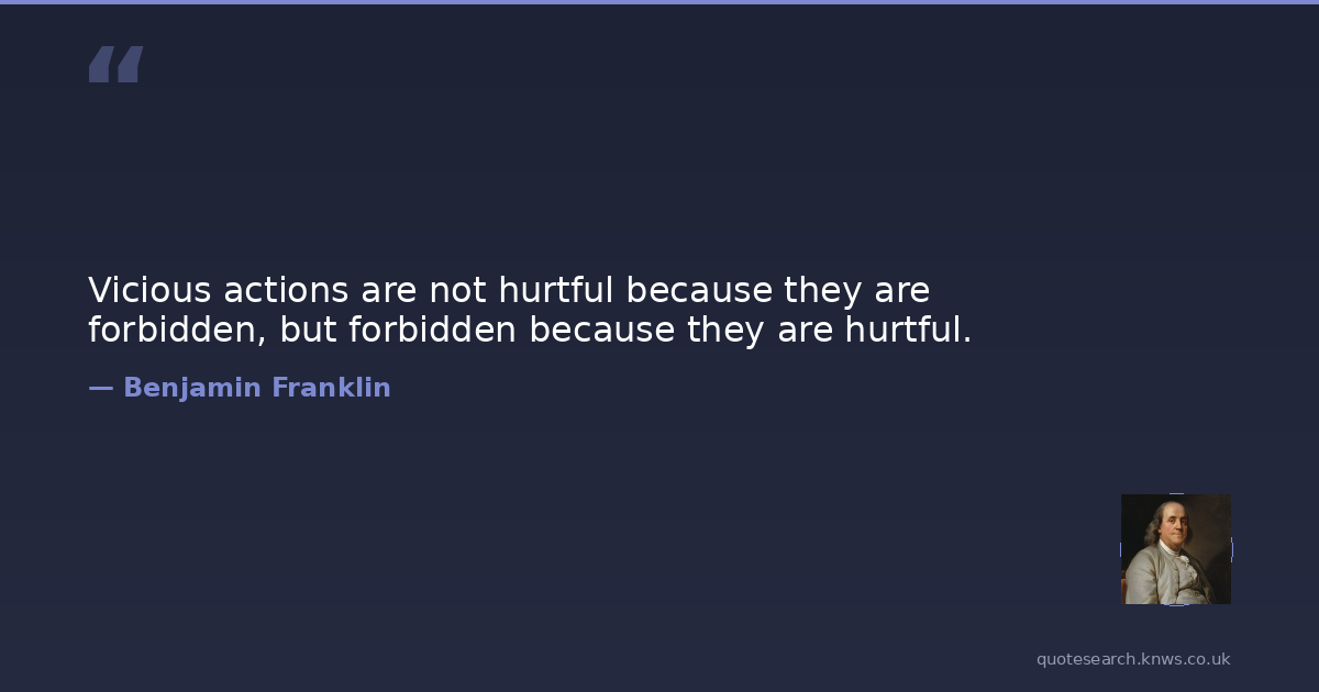 Vicious actions are not hurtful because they are forbidden, but forbidden because they are hurtful.